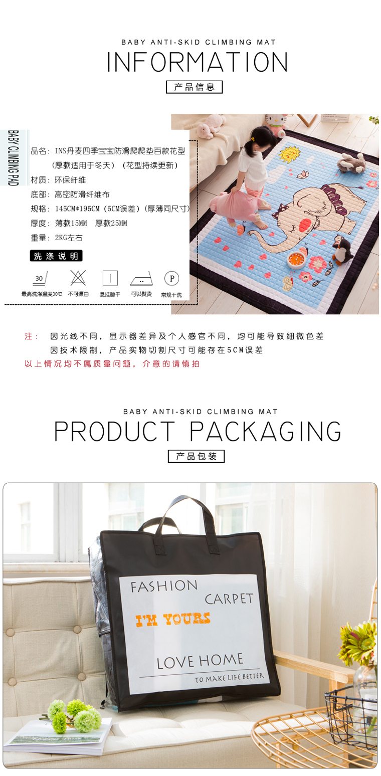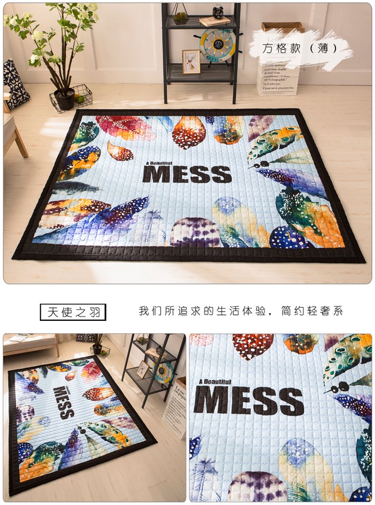 春夏トランペット全綿爬行パッド赤ちゃん用フロアマット赤ちゃん用厚手絨毯機洗いルームルームルーム子供用マット浅黄色ハスキーS 1455 x 195 cm薄いタイプ