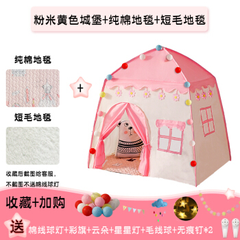 | 商品名称 | 子供用テントゲームルーム室内家庭用少女誕生日プレゼントおもちゃ屋子供部屋夢幻小城粉米黄+純綿じゅうたん+短毛絨毯送灯+雲+彩旗 |
