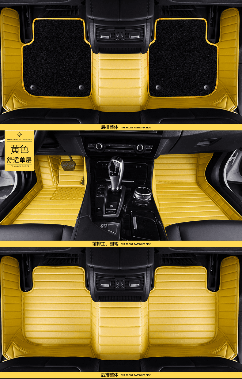 かわいい漫画都市の小さい精霊のベンツの斯馬特Smart 2門の4つの自動車のフロアマットのじゅうたんは水洗いすることができます女性BYBPの横の条の単一層の黄色