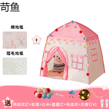 子供用テント室内子供用テントゲームルーム室内の家庭用姫の誕生日プレゼントおもちゃ屋子供の部屋夢小城粉米黄+綿じゅうたん+短い毛のじゅうたん+明かり+雲+旗