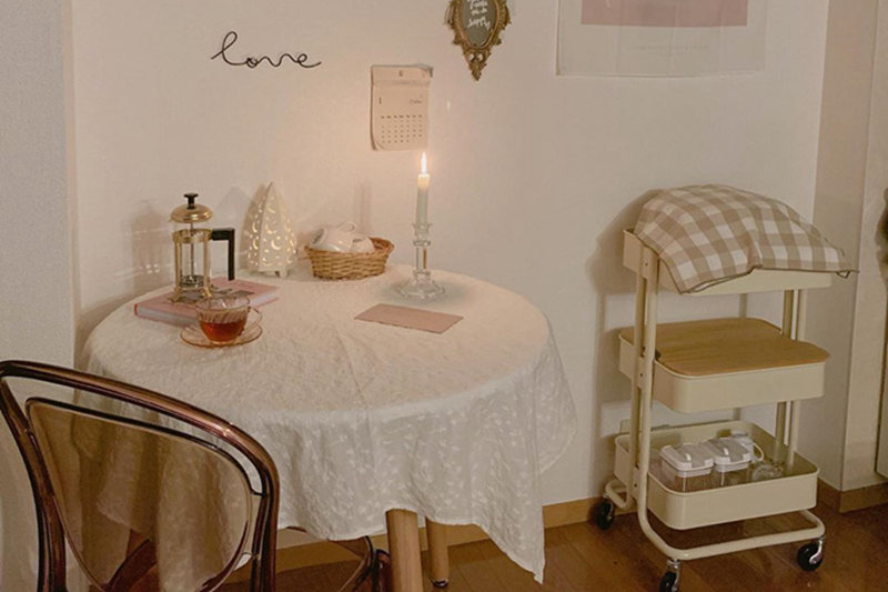 ins風の寝室のベッドサイドの絨毯は可愛いです。ベッドの下には小さな絨毯があります。