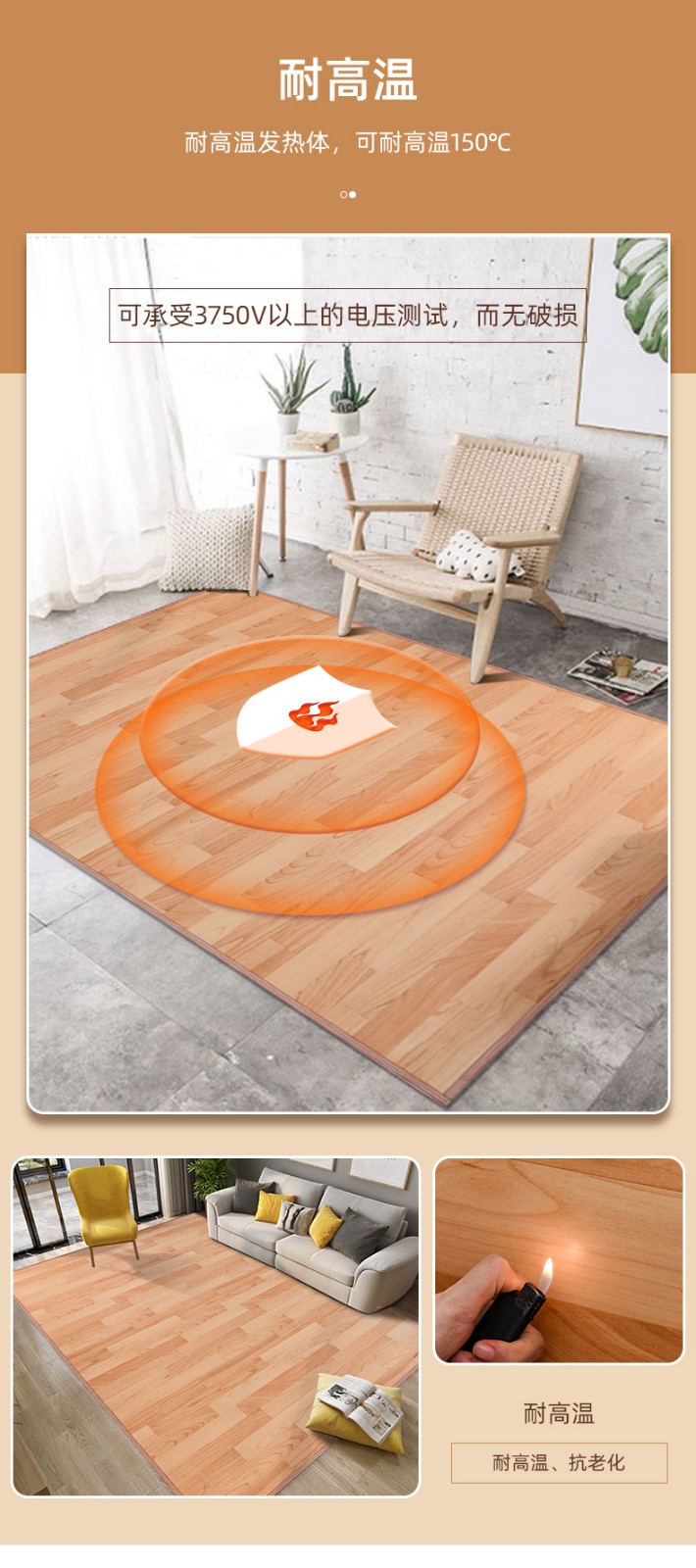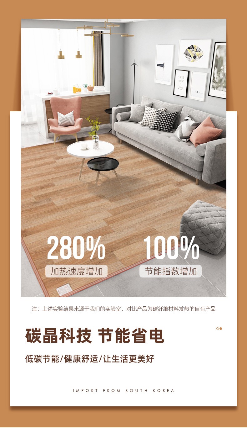 小熊优品韩国炭晶地暖垫电热地毯客间暖超大グラフェン电热オンドル热地垫児童地热地毯畳み热地垫移动暖爬垫子大理石米黄50センチメートルx 200センチメートル