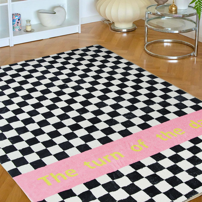 棋盤格絨毯緑白格子現代簡約ins風モロッコ小衆客間ベッドサイド絨毯ポール-赤80*160【羊绒を模する】