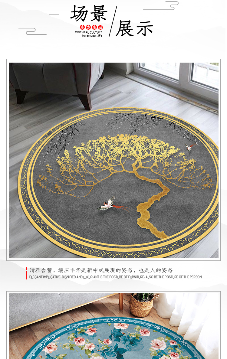 円形新中国のカペット禅意古典花鳥中国風家庭用リビングティー書斎寝室滑り止め争鮮闘艶-円60×60 CM【写真価格ブランド見積】-