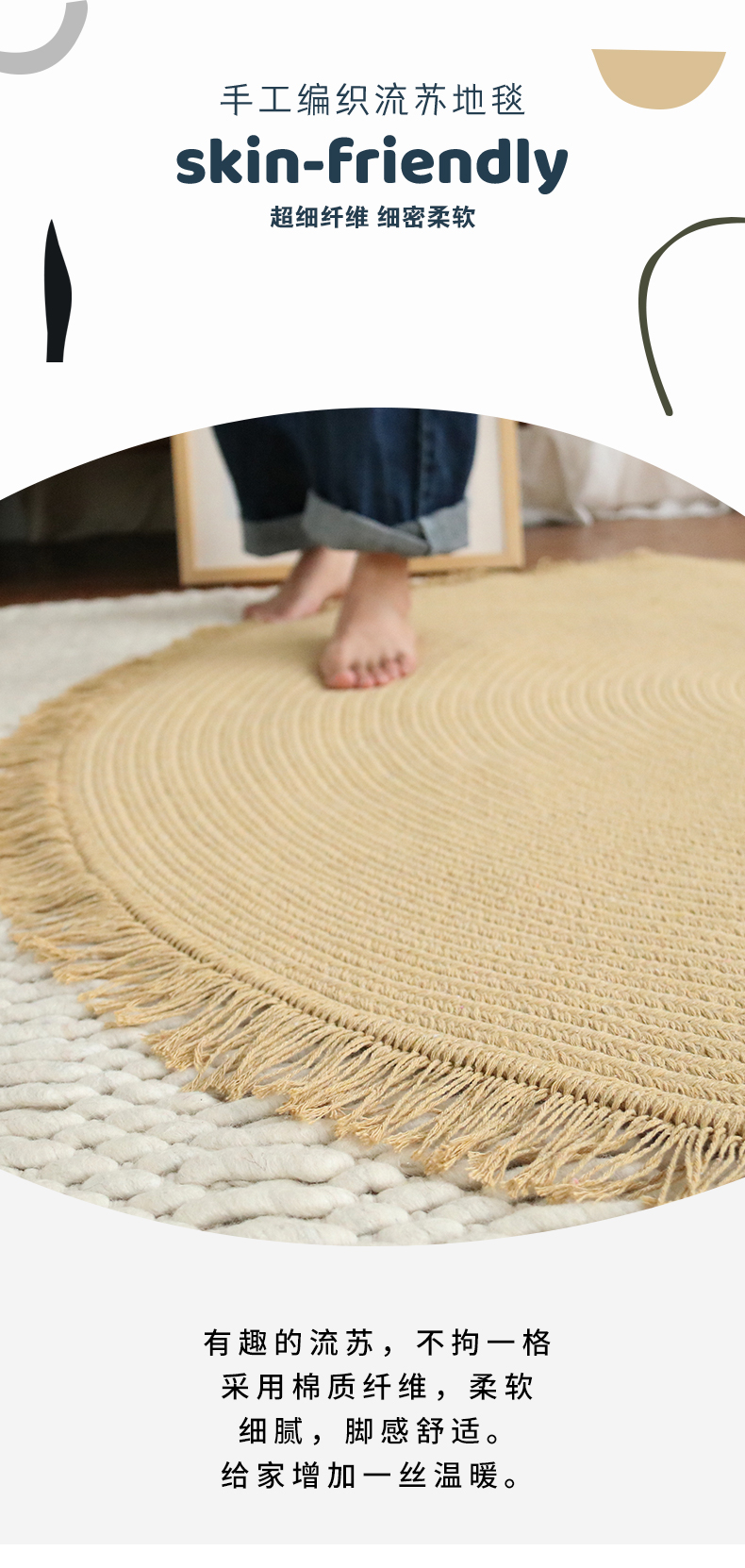 | 商品名称 | 縦横手編みコットンカーペットリビング流蘇帯穂少女ins寝室ベッドサイドカーペット茶幾ソファーカーペットカスタマイズ小米黄直径150 CM |